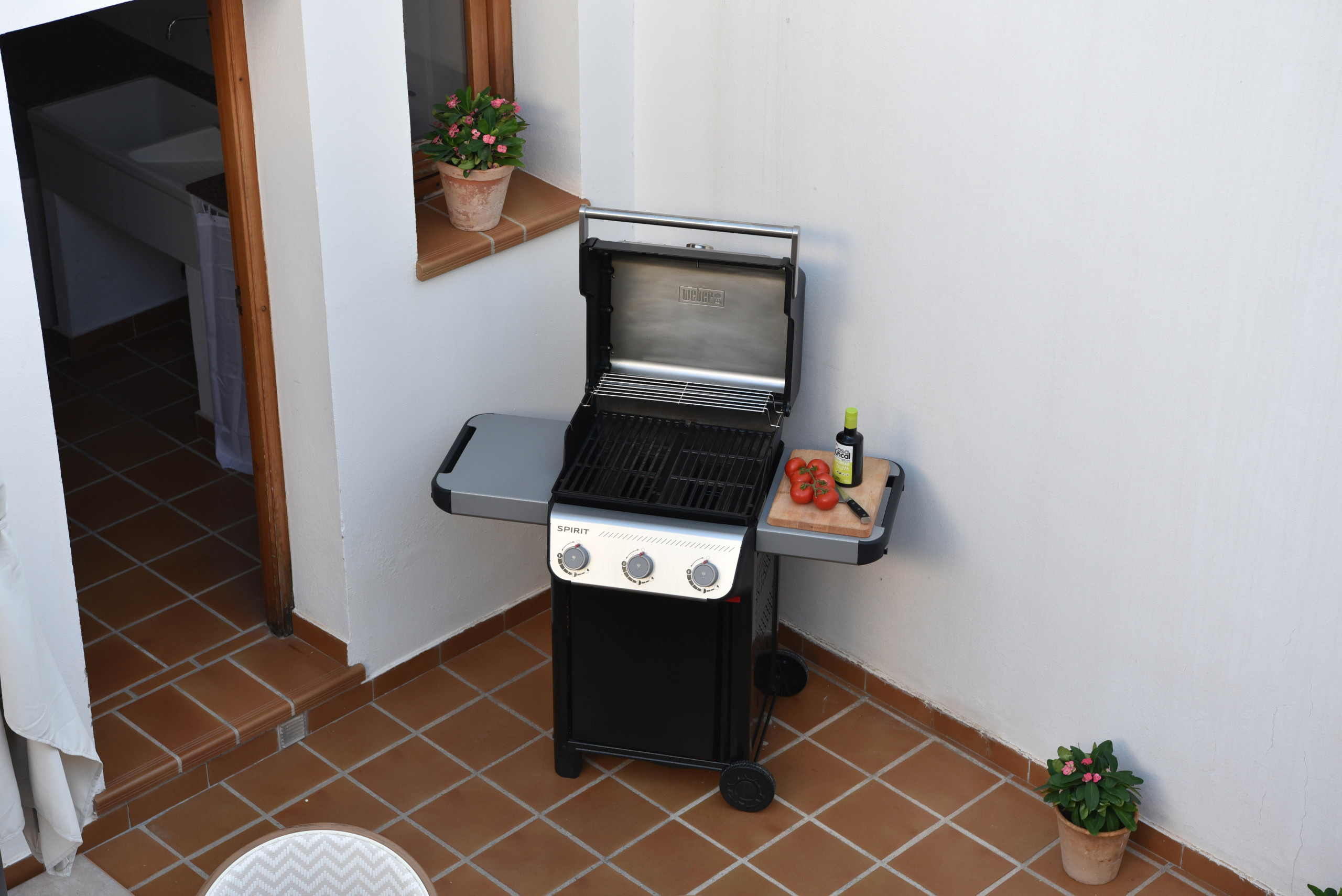 Depuis cet espace, on accède à la terrasse, l’un des recoins les plus charmants de la maison : parfaite pour savourer des repas en plein air, préparer un barbecue à gaz ou simplement se laisser porter par la brise méditerranéenne. Ce niveau comprend également une salle de bain complète avec baignoire, une buanderie et, en plus, deux vélos mis à disposition des hôtes.